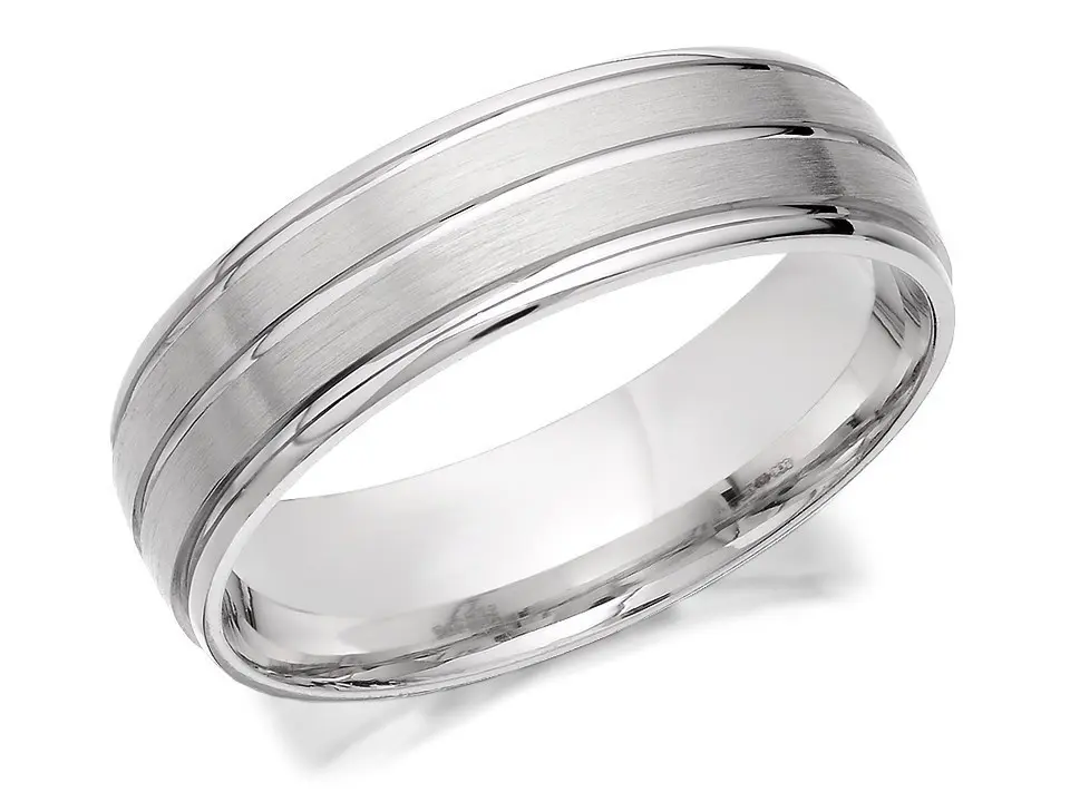 9ct White Gold Banded Wedding Ring - 6mm - R2442