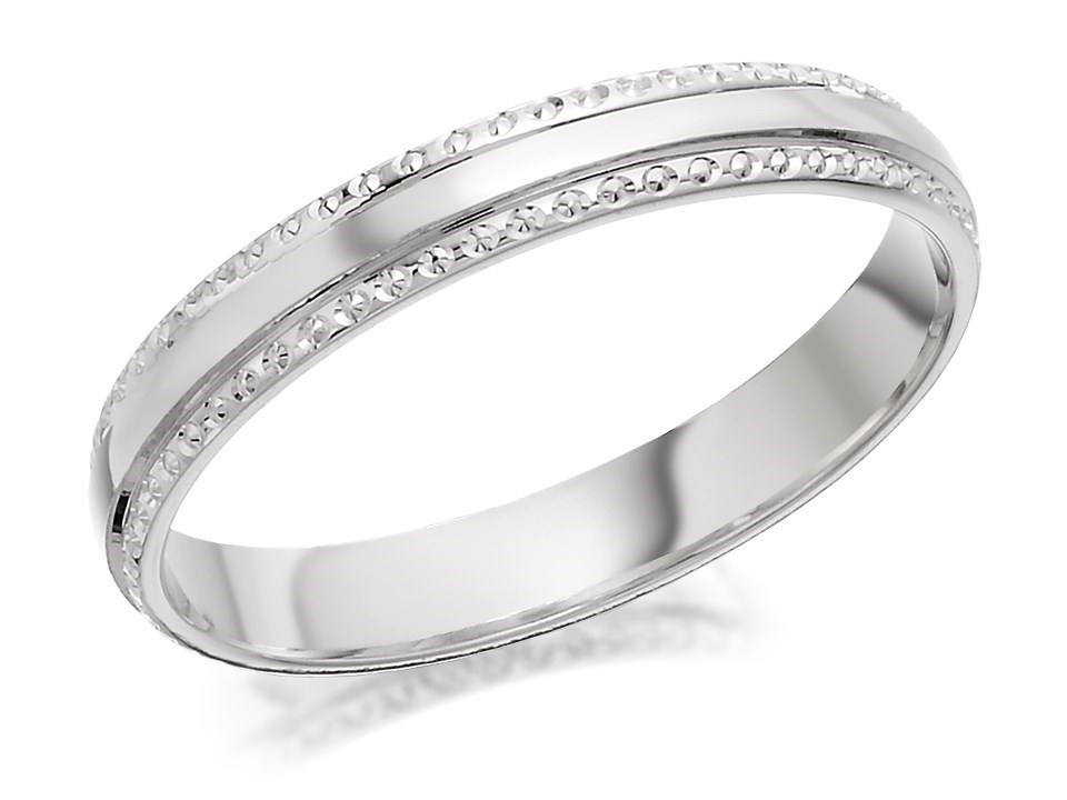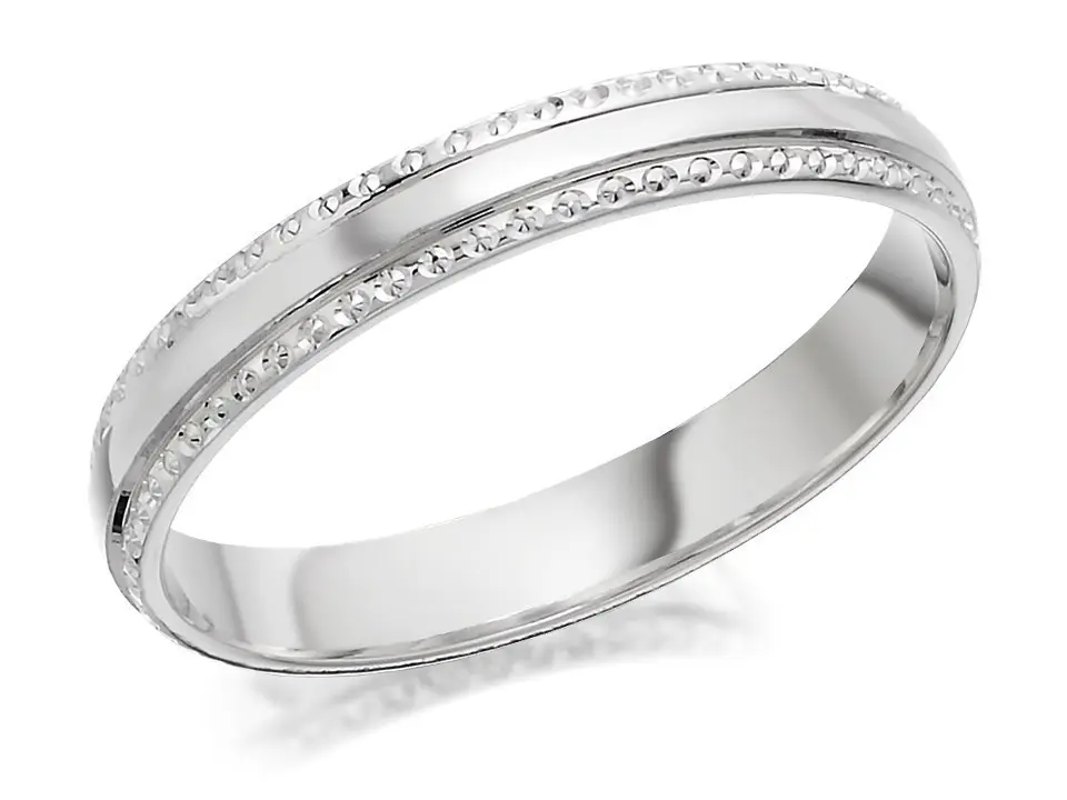 9ct White Gold Beaded Edge Wedding Ring - 3mm - R2340