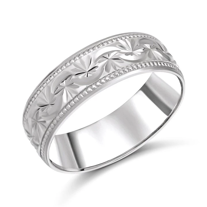 9ct White Gold Beaded Garland Wedding Ring - 5mm - Size I - Z15110