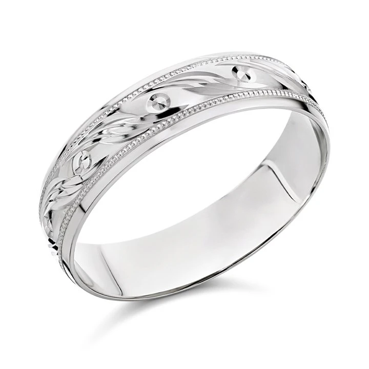 9ct White Gold Beaded Swirls Wedding Ring - 6mm - Size Z+1 - Z09936