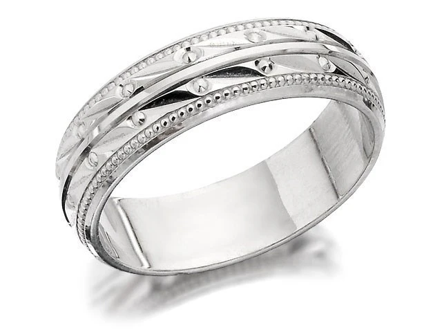 9ct White Gold Beaded Wedding Ring - 5mm - R2459