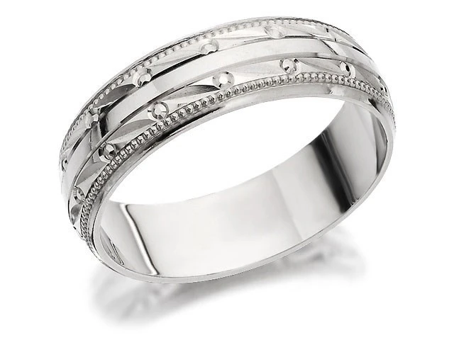 9ct White Gold Beaded Wedding Ring - 6mm - R2409