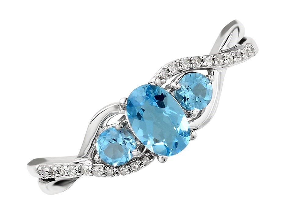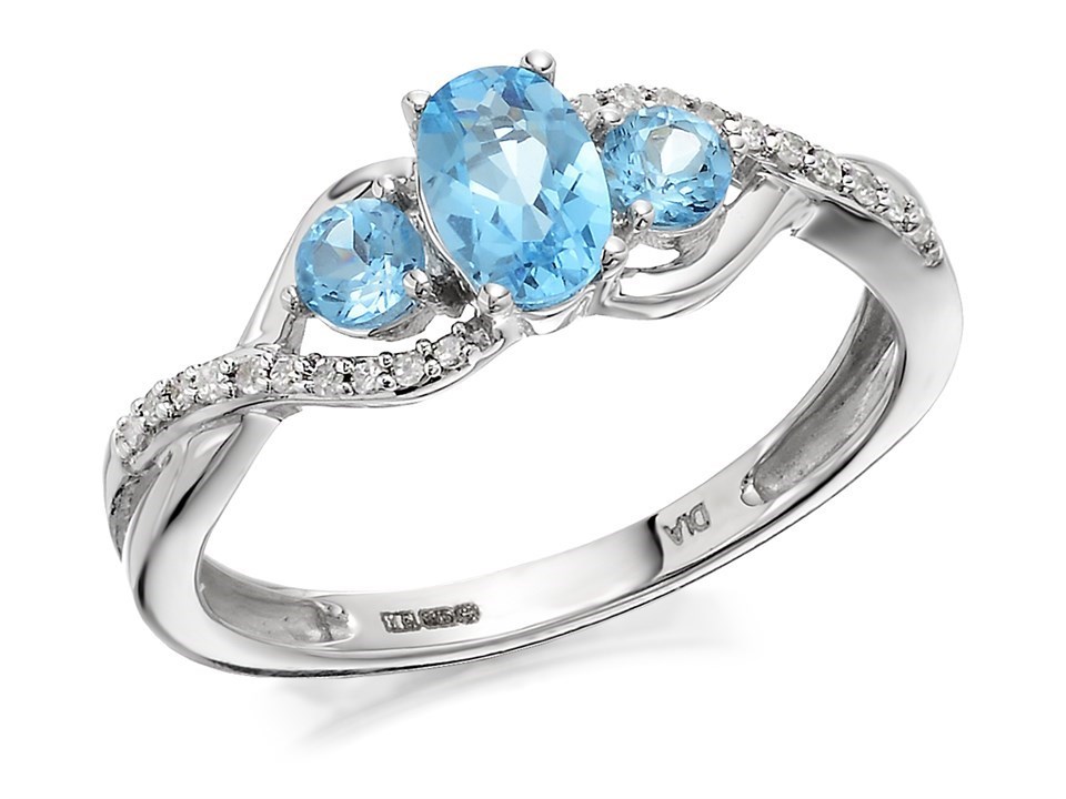 9ct White Gold Blue Topaz And Diamond Crossover Ring - EXCLUSIVE - D63122