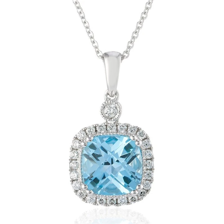 9ct White Gold Blue Topaz And Diamond Necklace - 18pts - D95140