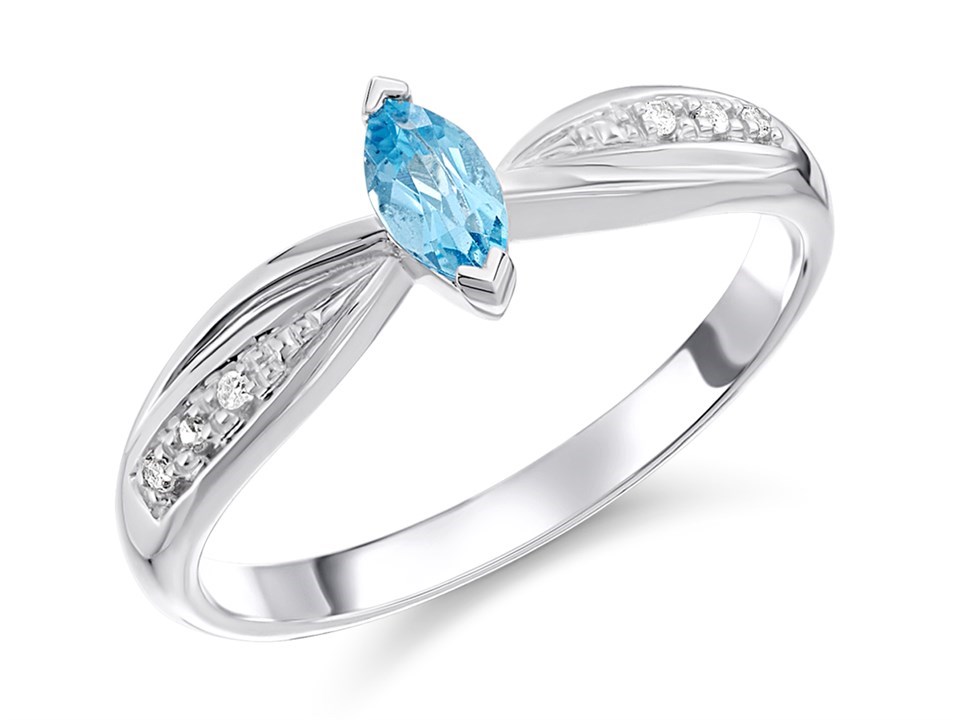9ct White Gold Blue Topaz And Diamond Ring - D7944