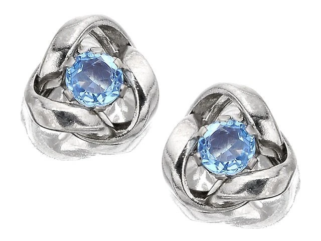 9ct White Gold Blue Topaz Knot Earrings - 7mm - EXCLUSIVE - G0216