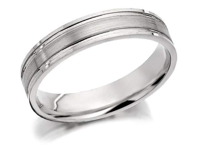 9ct White Gold Brushed Finished Wedding Ring - 4mm - R2462
