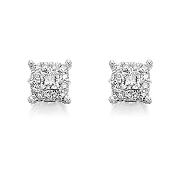 9ct White Gold Cluster Stud Earrings - 10pts per pair - D5463