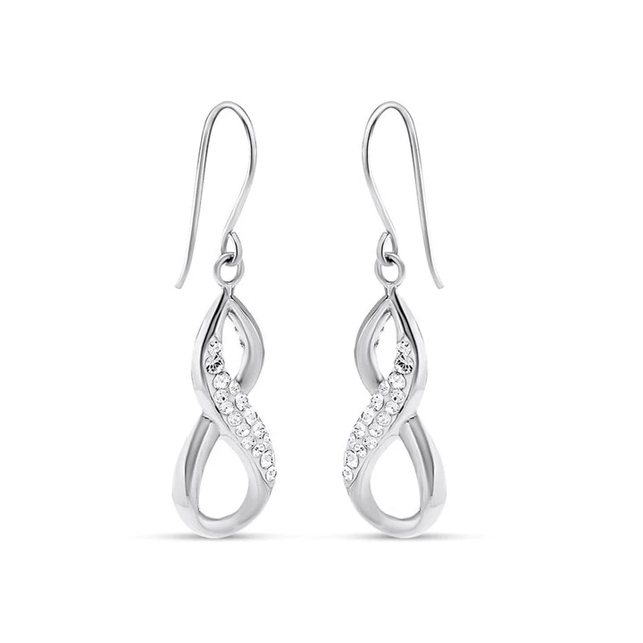 9ct White Gold Crystal Infinity Hook Wire Earrings - 30mm drop - G1060