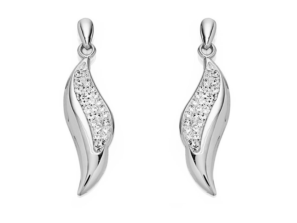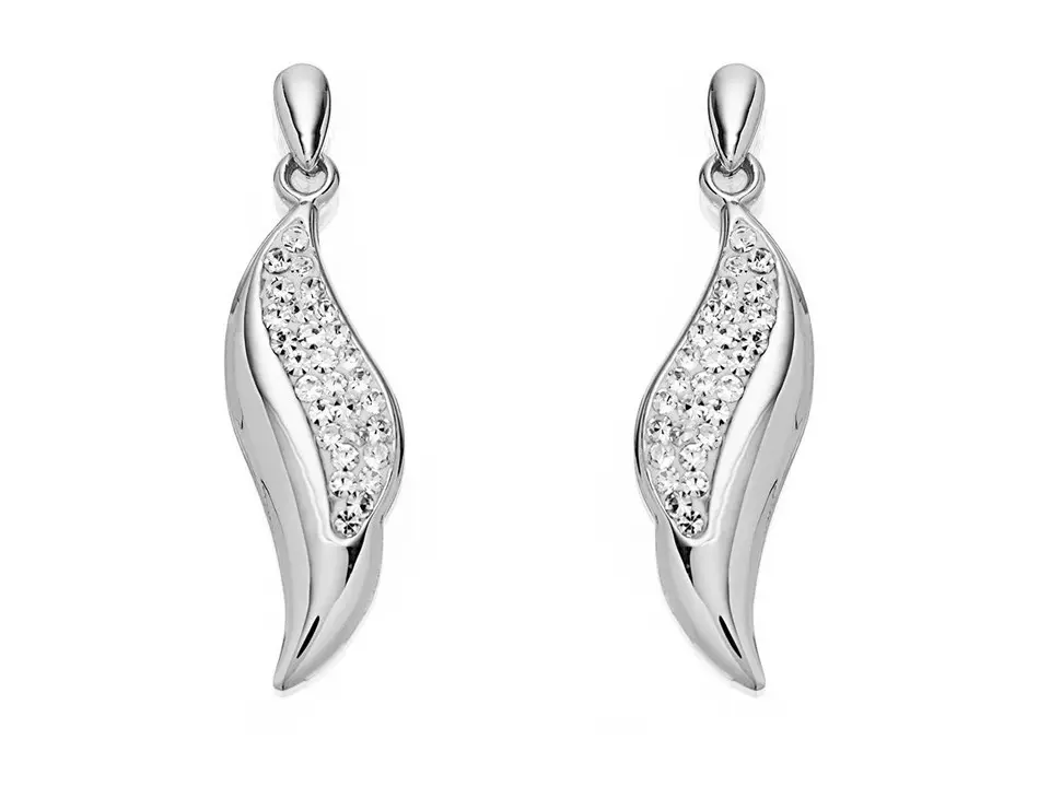 9ct White Gold Crystal Leaf Drop Earrings - 25mm drop - G1047