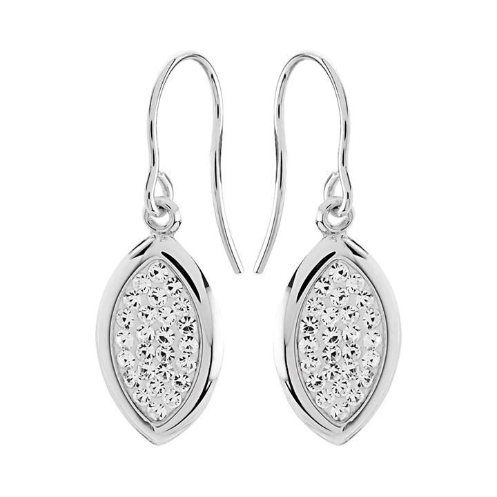 9ct White Gold Crystal Teardrop Hook Wire Earrings - 28mm drop - G1072