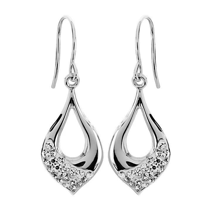 9ct White Gold Crystal Teardrop Hook Wire Earrings - 34mm drop - G1071