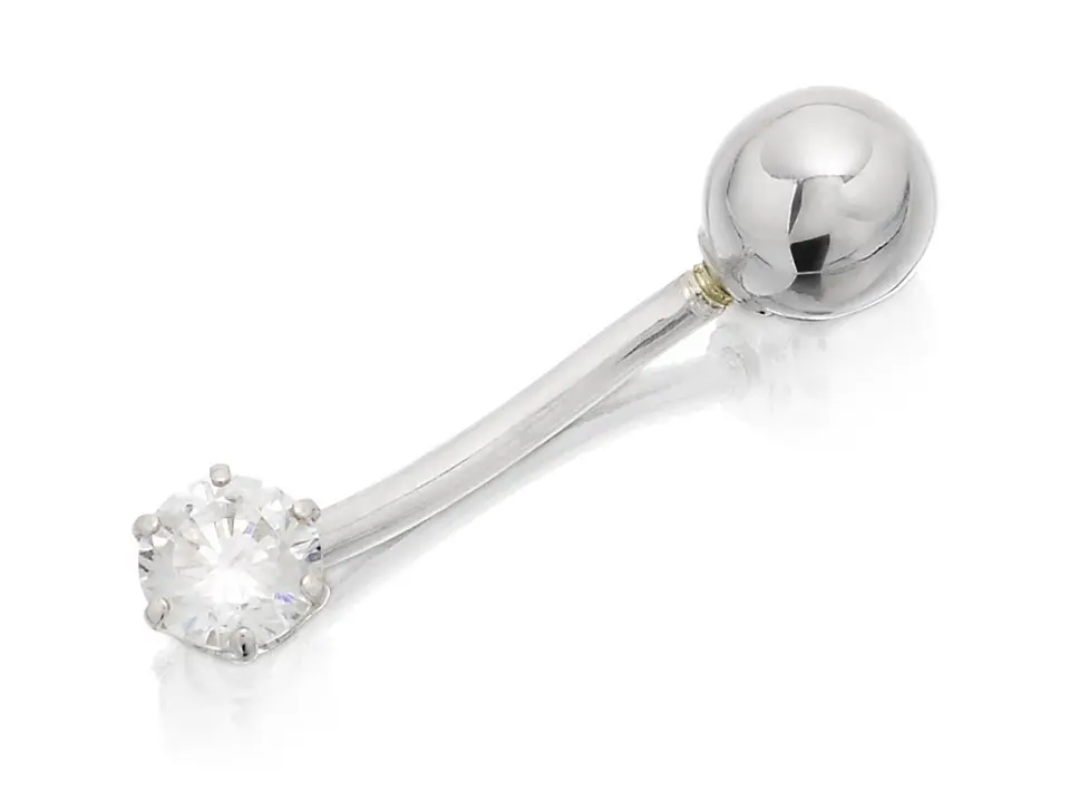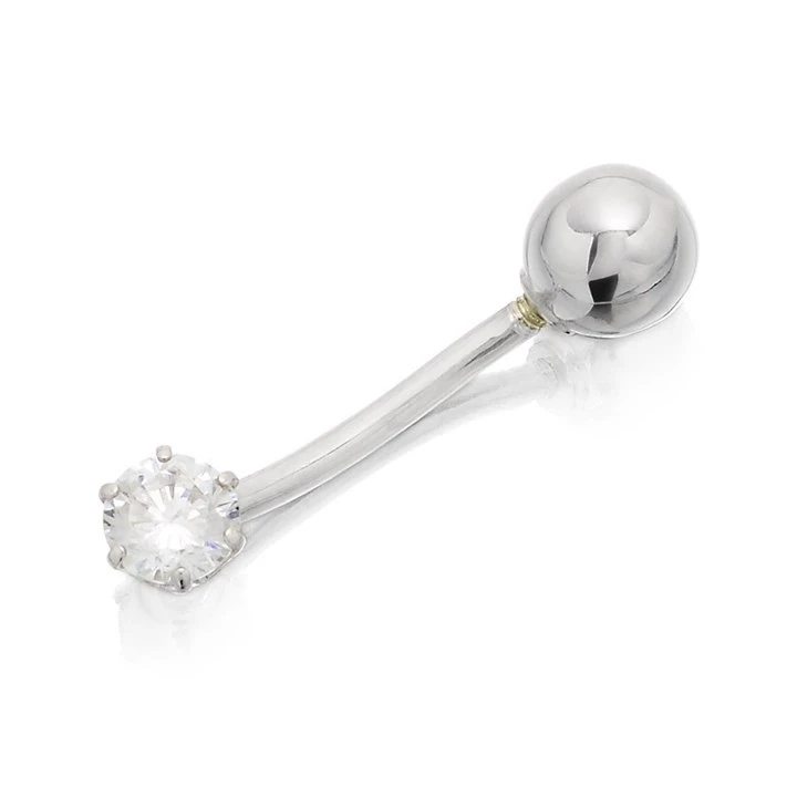 9ct White Gold Cubic Zirconia Belly Bar - 10mm - G4727