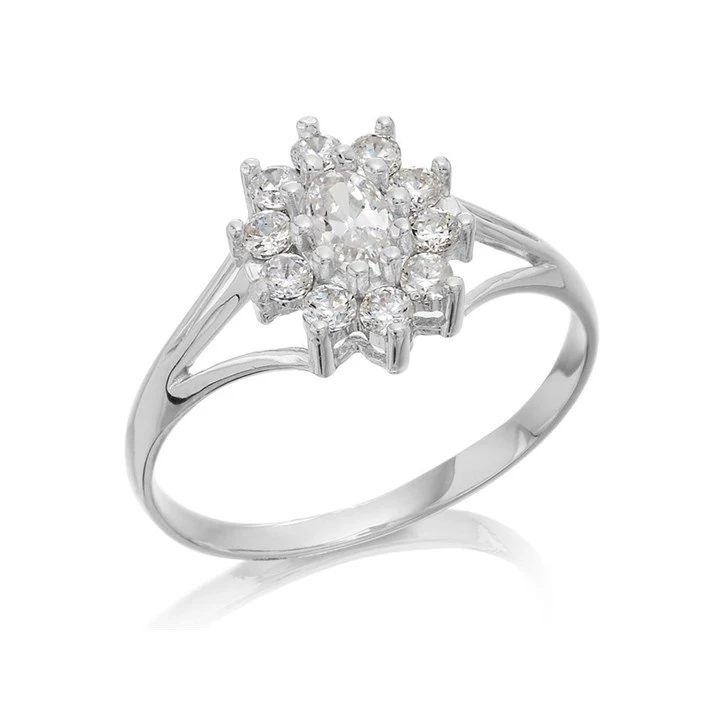 9ct White Gold Cubic Zirconia Cluster Ring - R6528-A