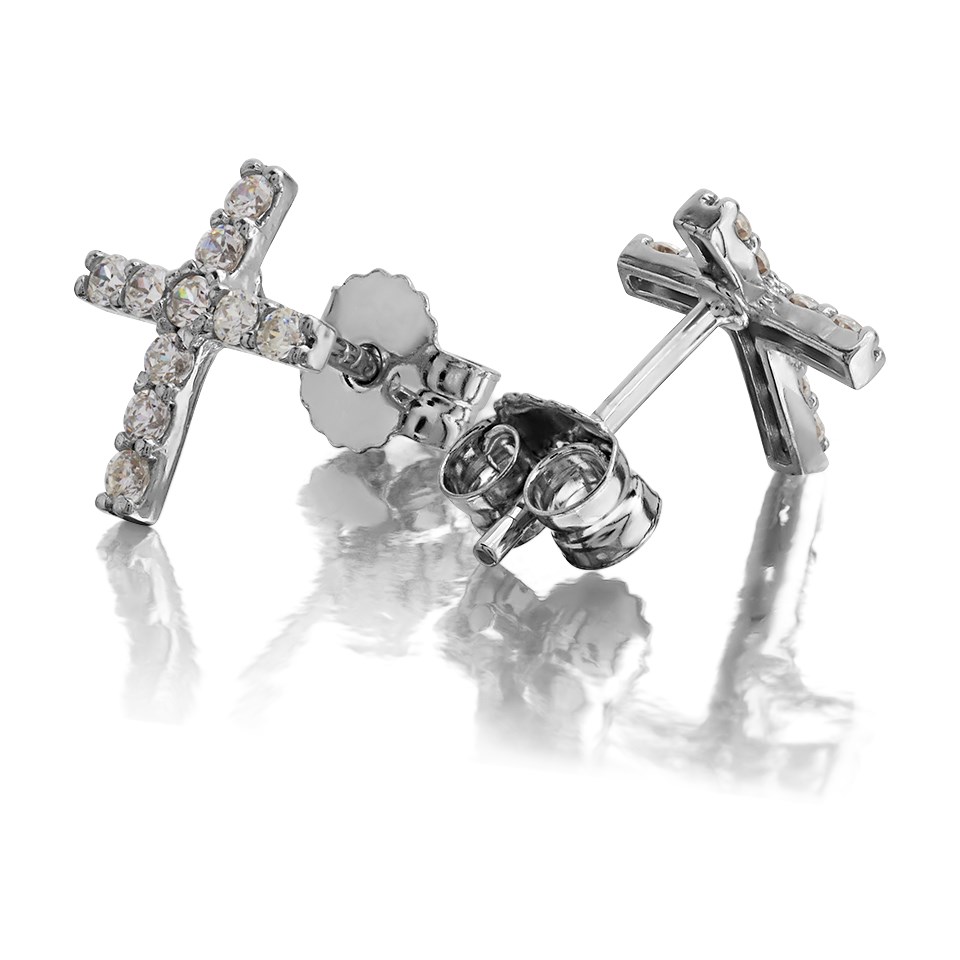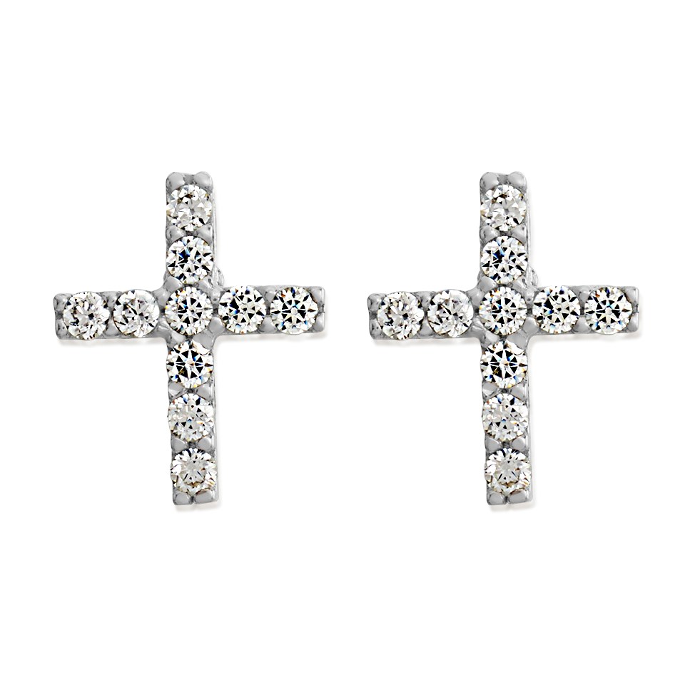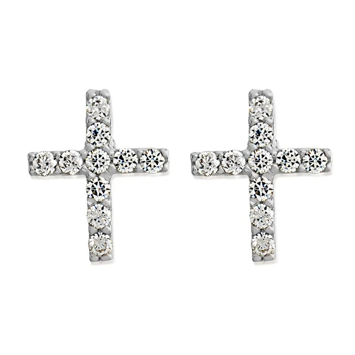 9ct White Gold Cubic Zirconia Cross Stud Earrings - 9mm - G32101