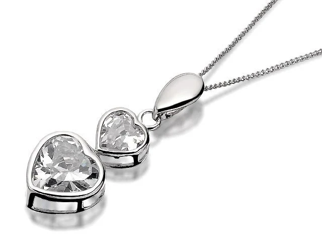 9ct White Gold Cubic Zirconia Double Heart Necklace - R6906