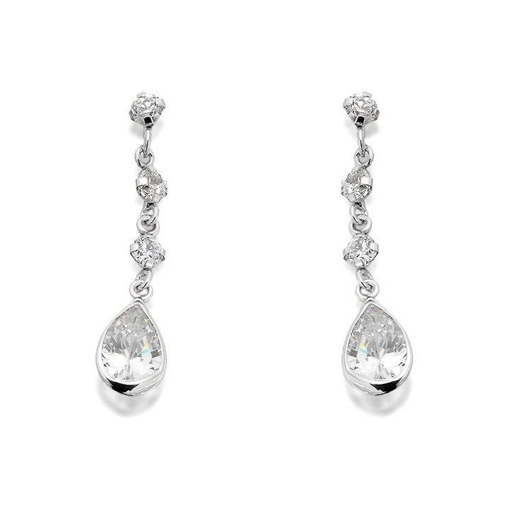 9ct White Gold Cubic Zirconia Drop Earrings - 24mm drop - G2844