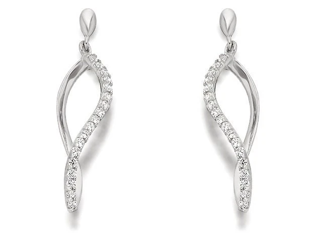 9ct White Gold Cubic Zirconia Drop Earrings - 25mm drop - G2839