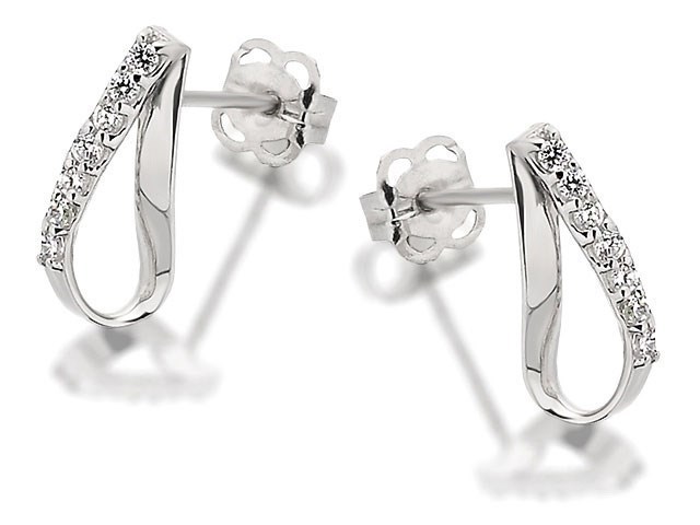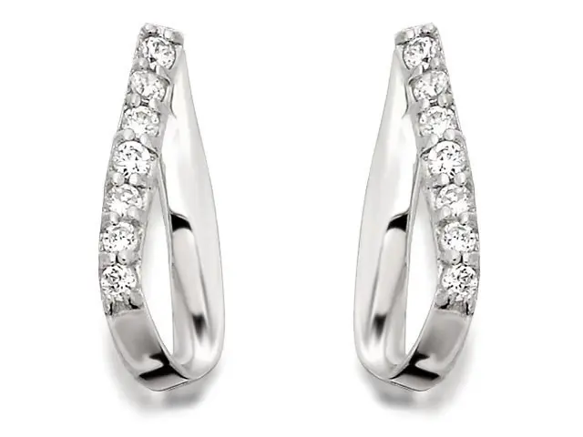 9ct White Gold Cubic Zirconia Flattened Loop Earrings - 10mm - G2754