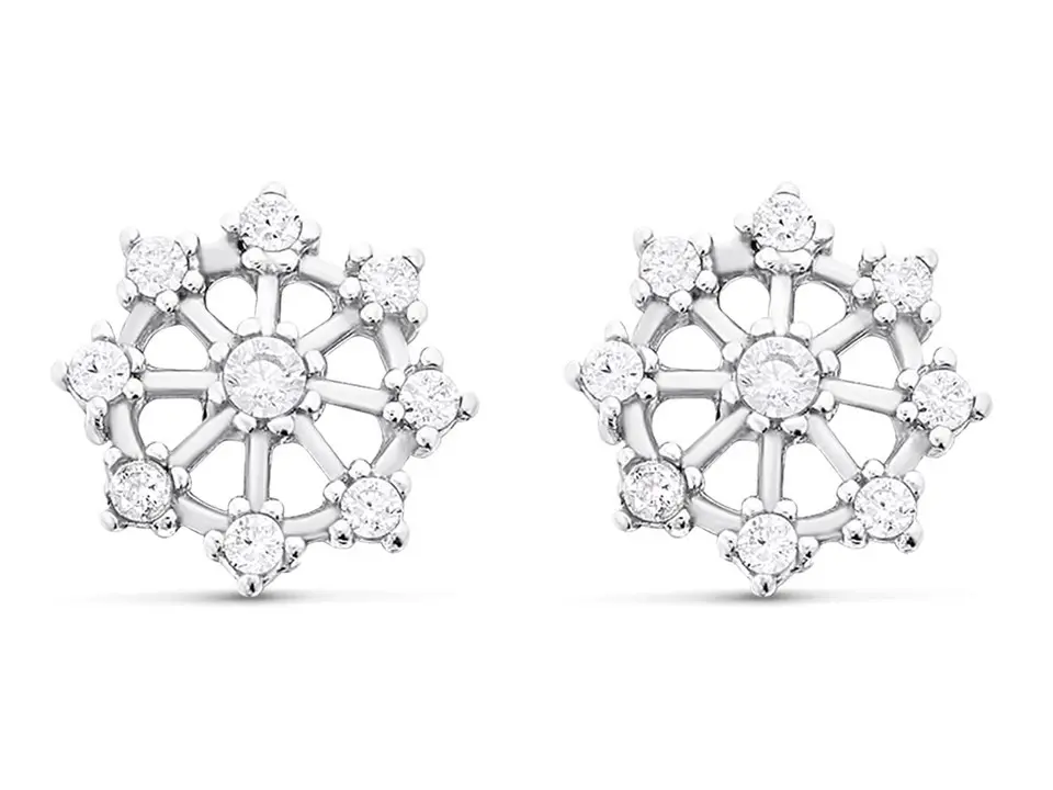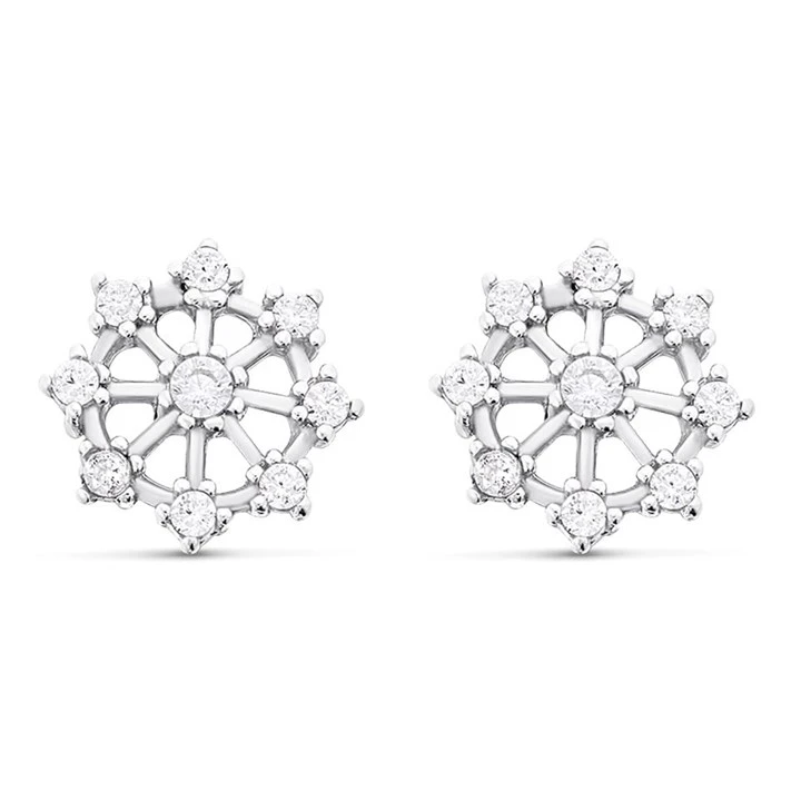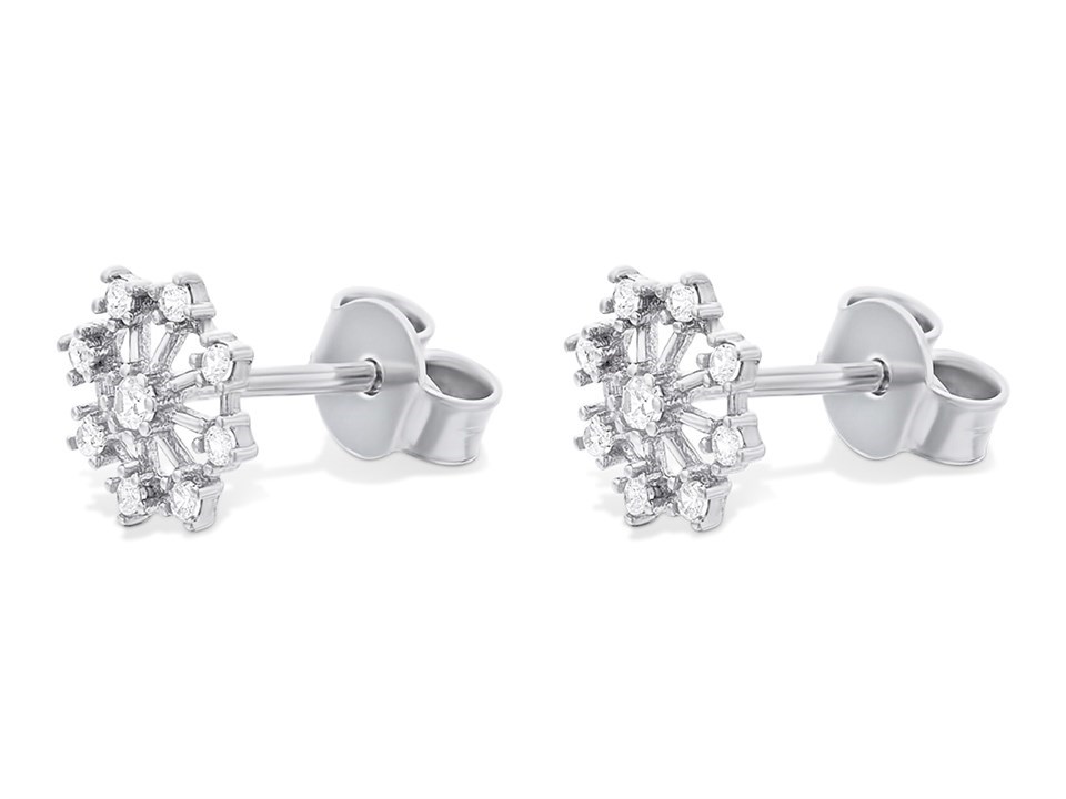 9ct White Gold Cubic Zirconia Flower Stud Earrings - 6mm - G3271