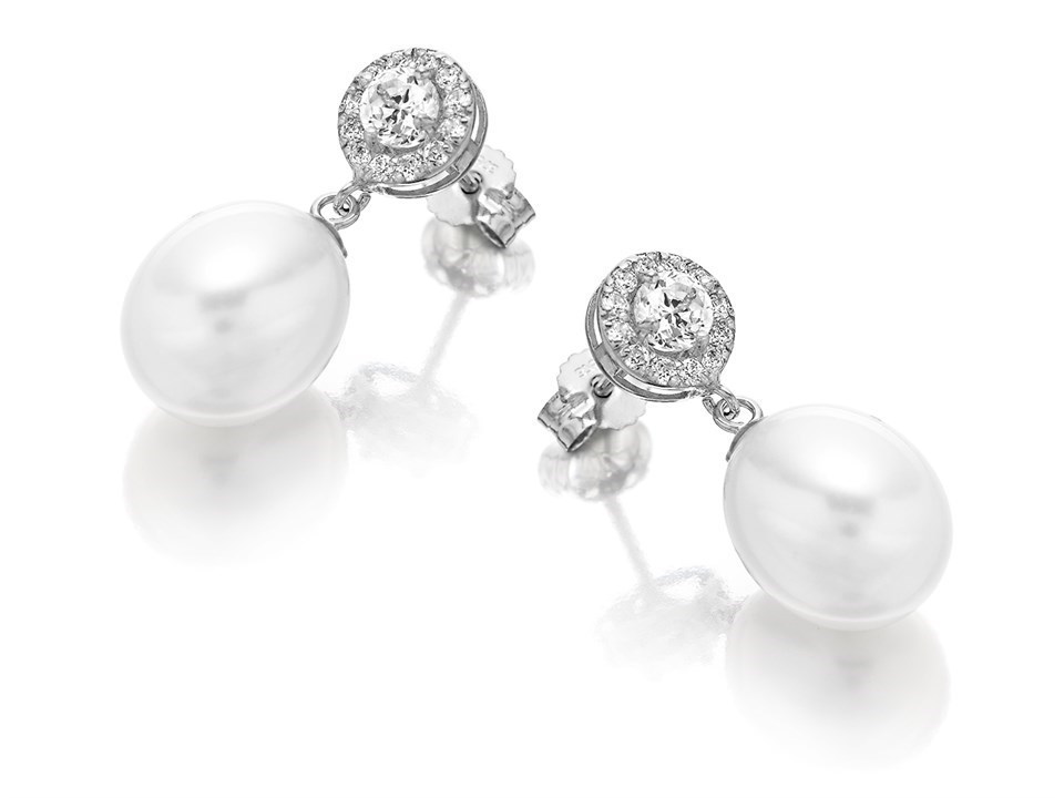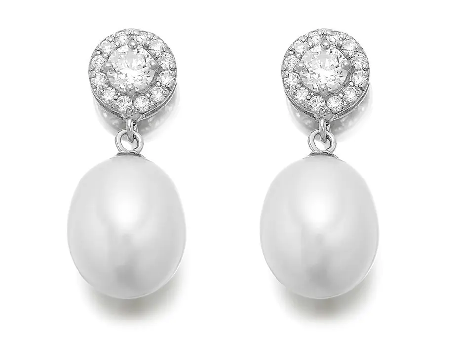 9ct White Gold Cubic Zirconia Freshwater Pearl Drop Earrings - 20mm drop - G3257