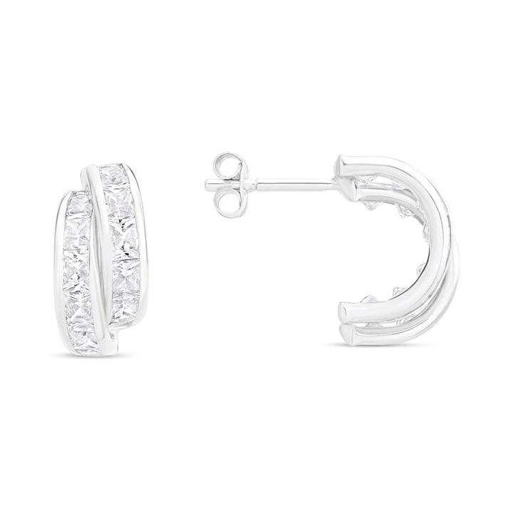 9ct White Gold Cubic Zirconia Half Hoop Earrings - 12mm - G27137