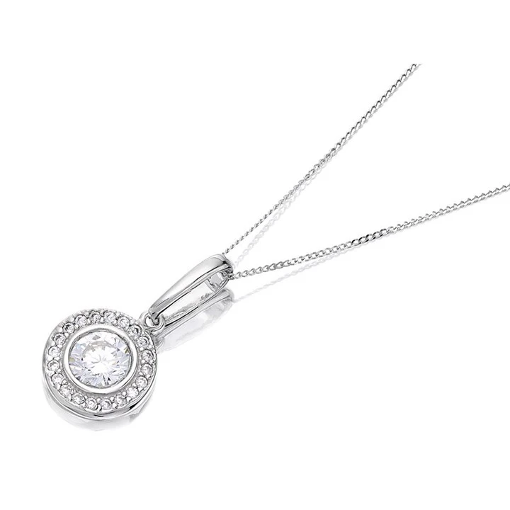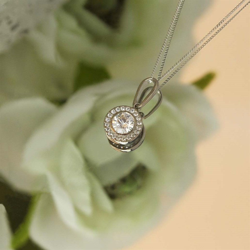 9ct White Gold Cubic Zirconia Halo Necklace - R6966