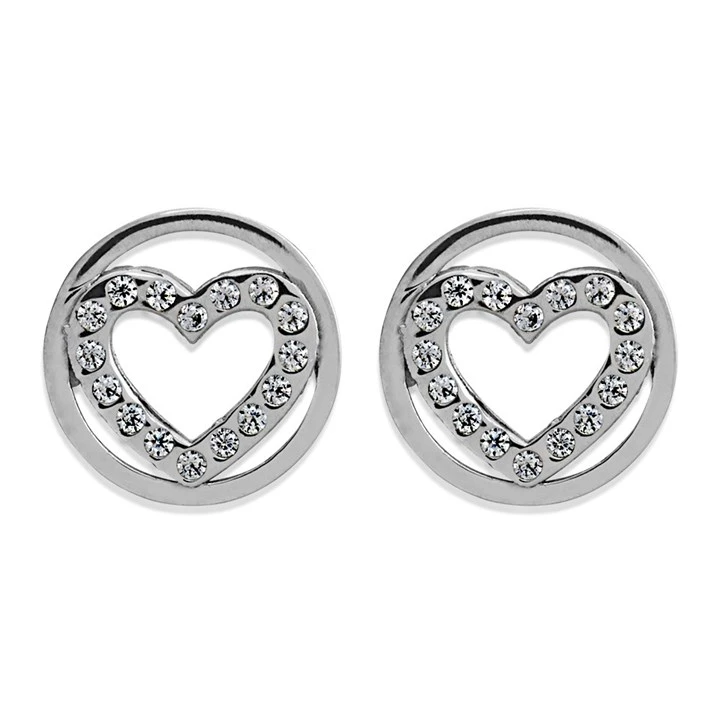 9ct White Gold Cubic Zirconia Heart Circle Stud Earrings - 7mm - G32100