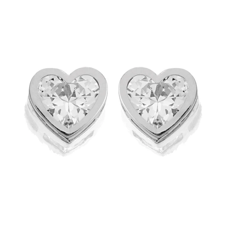 9ct White Gold Cubic Zirconia Heart Stud Earrings - 6mm - G3292