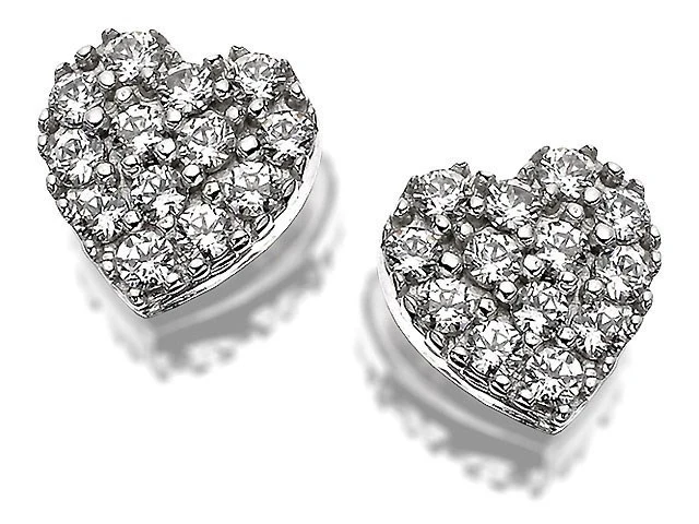 9ct White Gold Cubic Zirconia Heart Stud Earrings - 7mm - EXCLUSIVE - G3224
