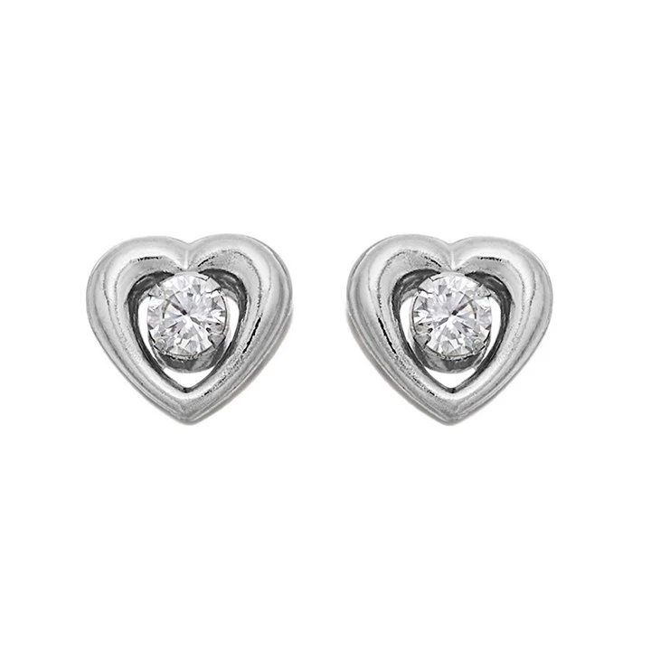9ct White Gold Cubic Zirconia Heart Stud Earrings - 7mm - G2923