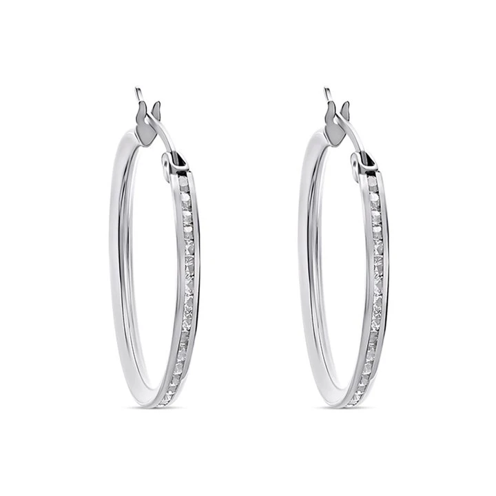 9ct White Gold Cubic Zirconia Hoop Earrings - 20mm - G3280