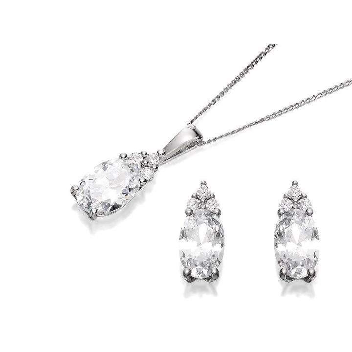 9ct White Gold Cubic Zirconia Pear Cluster Earring And Pendant Set - GS3251