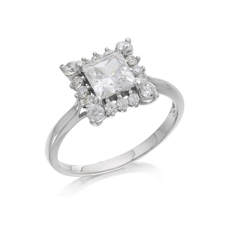 9ct White Gold Cubic Zirconia Square Cluster Ring - R6529