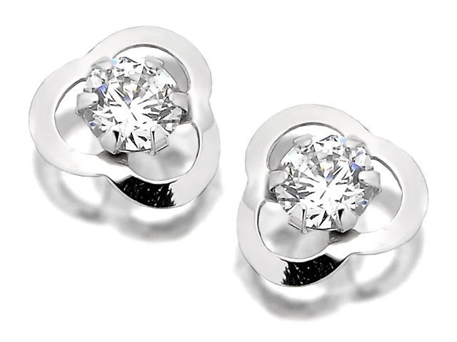 9ct White Gold Cubic Zirconia Trefoil Earrings - 6mm - G3220