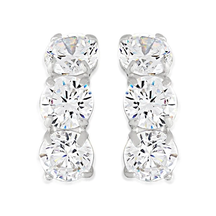 9ct White Gold Cubic Zirconia Trilogy Stud Earrings - 11mm - G27133