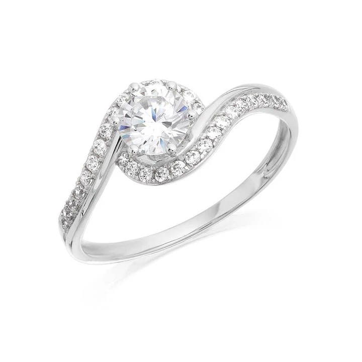 9ct White Gold Cubic Zirconia Wave Ring - R6555-U