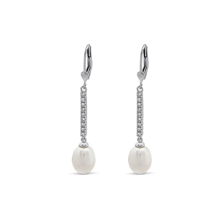 9ct White Gold Cultured Pearl And Diamond Drop Earrings - 15pts per pair - D9664