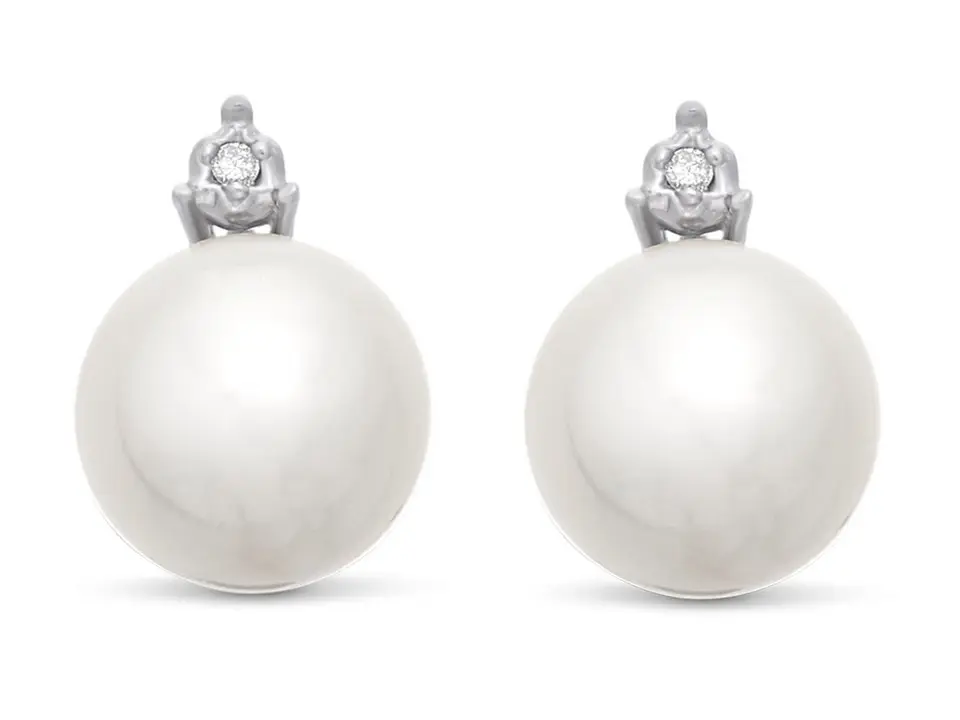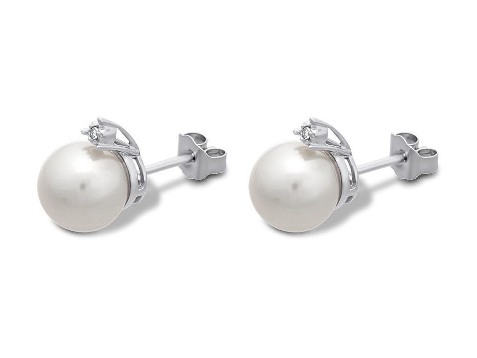 9ct White Gold Cultured Pearl And Diamond Stud Earrings - D54118