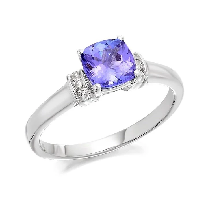 9ct White Gold Cushion Tanzanite And Diamond Ring - 6pts - EXCLUSIVE - D71104