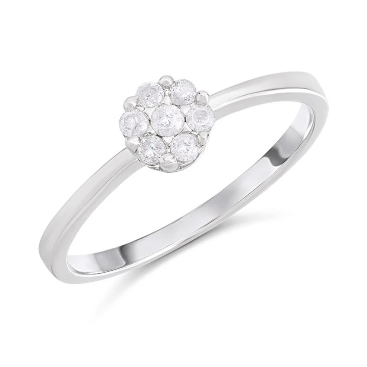 9ct White Gold Dainty Diamond Cluster Ring - D72139-A