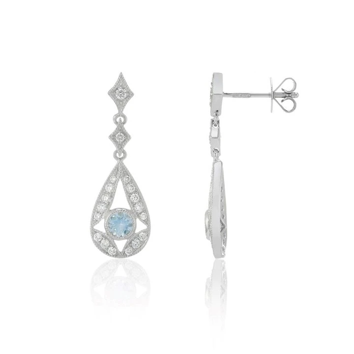 9ct White Gold Diamond And Aquamarine Drop Earrings - 32pts per pair - D87034