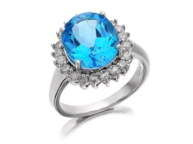 9ct White Gold Diamond And Blue Topaz Cluster Ring - 1/2ct - D7959-S
