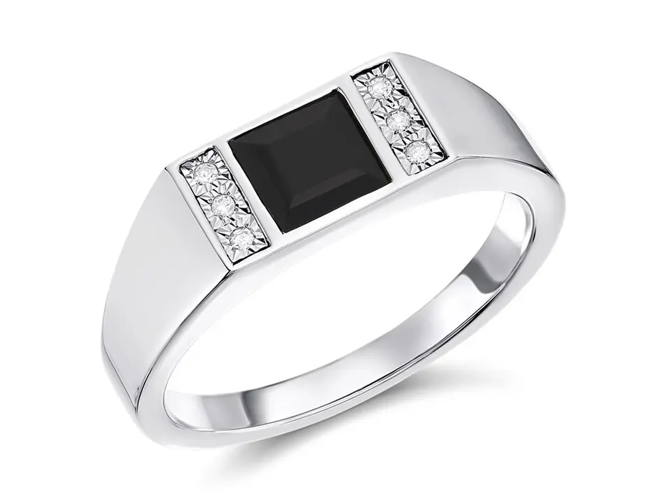 9ct White Gold Diamond And Onyx Signet Ring - R3717