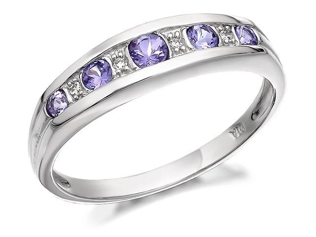 9ct White Gold Diamond And Tanzanite Half Eternity Ring - Exclusive - D7205