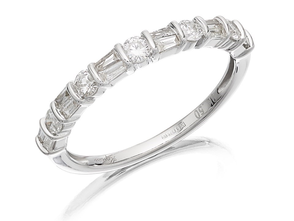 Similar to dress rings, wide band rings are usually worn for special occasions and offer an alternative to the slimmer, single row eternity ring. As band rings are often wider than the average engagement, eternity or dress ring, we recommend selecting at least one ring size larger than usual to accommodate the wide setting.