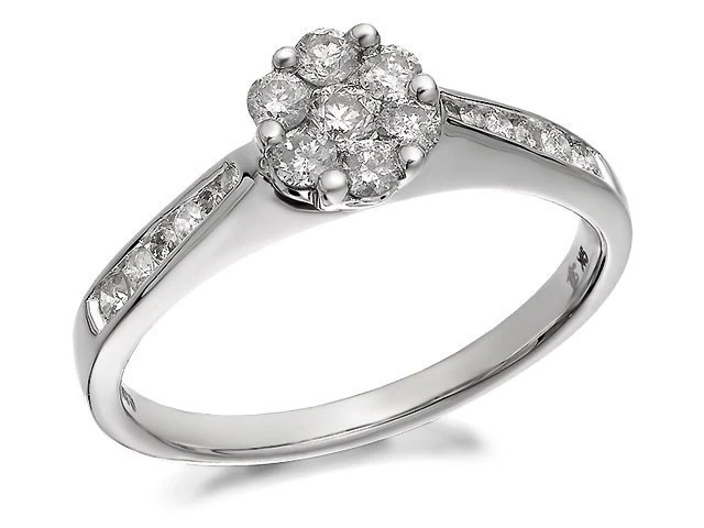 9ct White Gold Diamond Cluster Ring - 1/2ct - D6811