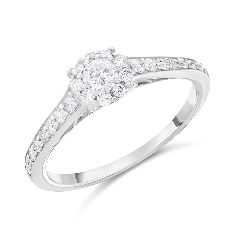 9ct White Gold Diamond Cluster Ring - 1/2ct Size O - Z51177