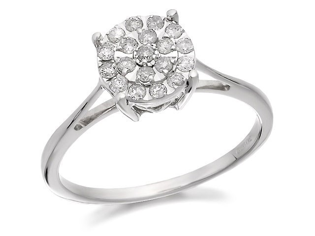 9ct White Gold Diamond Cluster Ring - 1/4ct - D7192