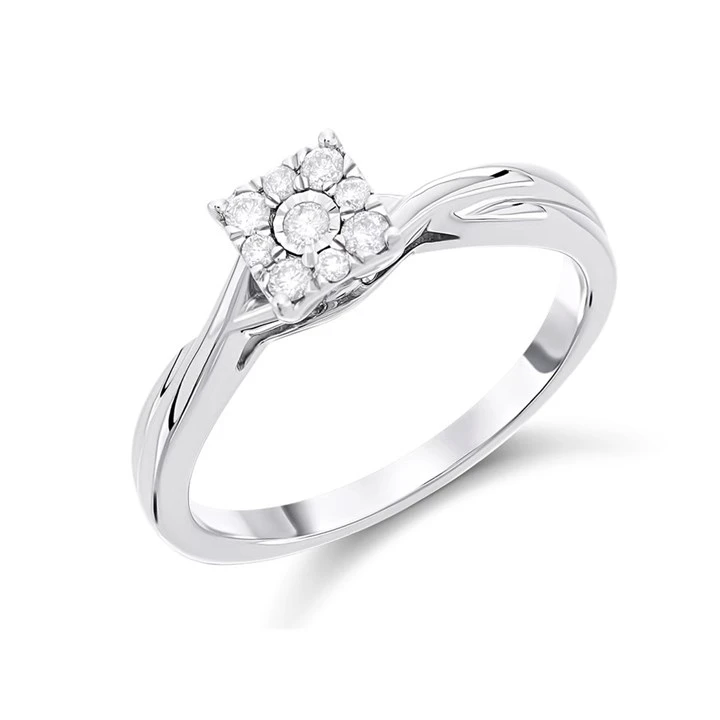 9ct White Gold Diamond Cluster Ring - 15pts - Size H - Z51108